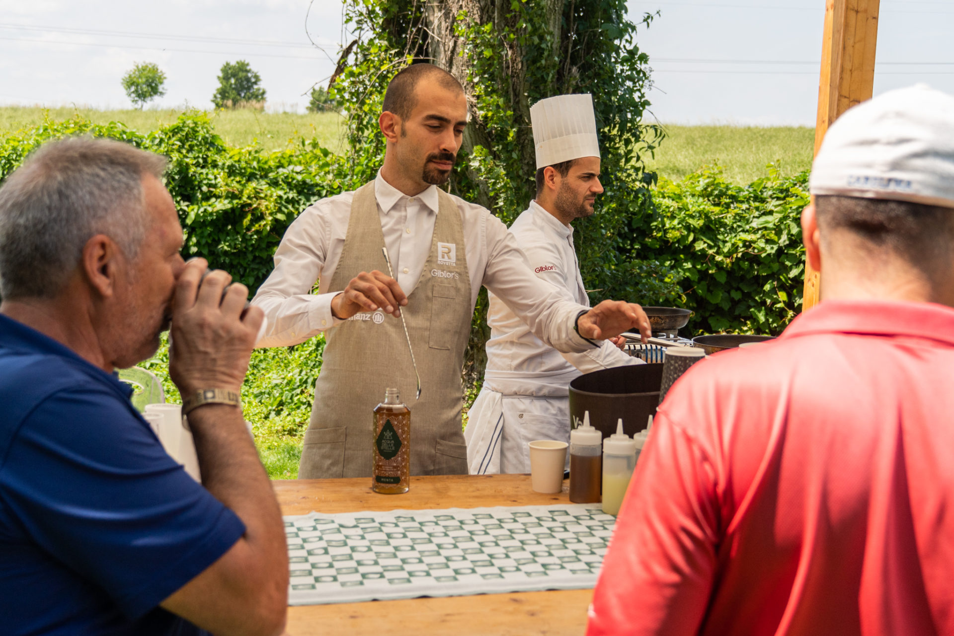 Ancora 9 buche ci separano dal termine della gara… e ancora 3 postazioni food and beverage! Ecco in buca 13 gli chef del ristorante Da Vittorio con il Toast “alla Vittorio” e un dissetante cocktail a base di Acqua delle Stelle di Azienda Agricola Pernigo by Valpantena e il Gian The Gin di Bulk Mixology Food Bar by Giancarlo Morelli.
