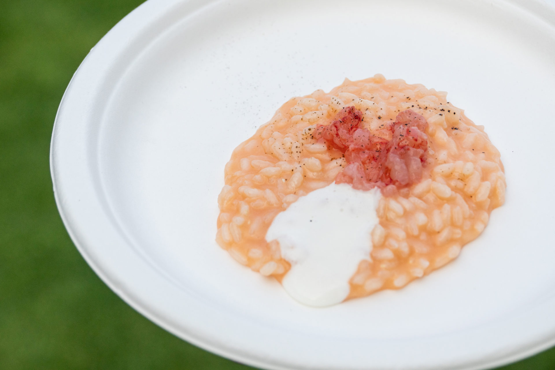 Un rinfrescante cocktail pre-dinner del Bulk Mixology Food Bar di Giancarlo Morelli apre le danze ai successivi due chef che rappresentano le anime della cultura culinaria della città di Verona. Prima chef Giorgia Piemonte del Ristorante Bottiglieria Corsini (Verona) con uno squisito baccalà mantecato, e poi chef Jacopo Natale di Yard Restaurant (Verona) con un gustoso risotto all’acqua di pomodoro.