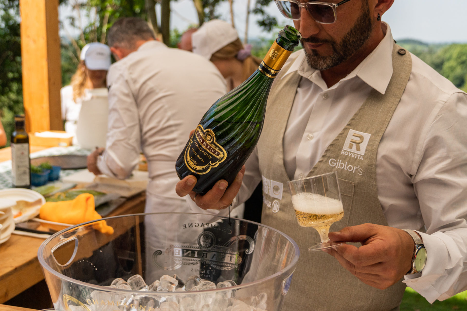 Prima pausa gourmet alla buca 4 insieme agli chef di Molino Dallagiovanna e alle loro strepitose pizze, enfatizzate da un assaggio di gorgonzola Palzola e dalle bollicine di Champagne Tsarine, Cuvée Orium.