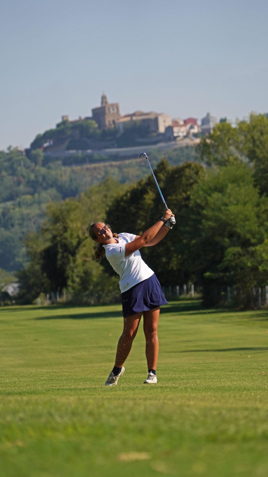 Ginevra approccia e lascia la sfera a 3 metri dalla bandiera. Anche per Matilde è il momento del gioco corto al quale fa seguito un putt che però non cade in buca.