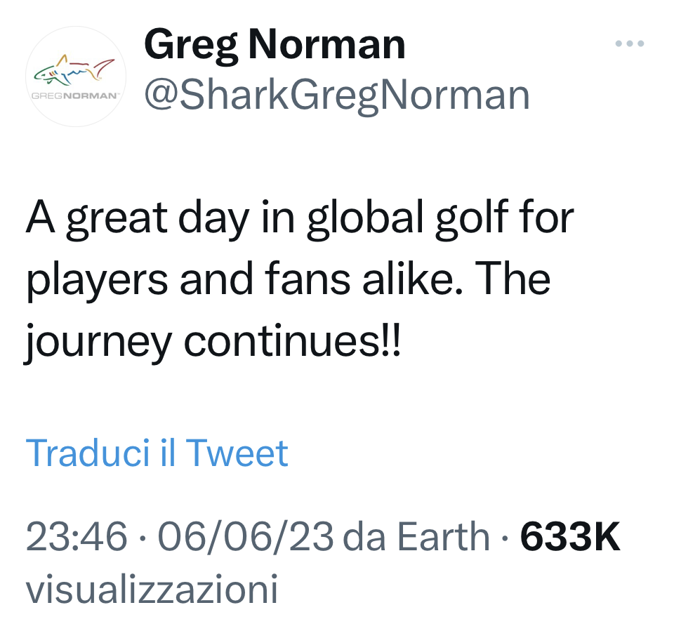 La posizione ufficiale in merito al CEO della LIV Golf é che sia stato messo al corrente dell’accordo solo pochi attimi prima dell’annuncio.