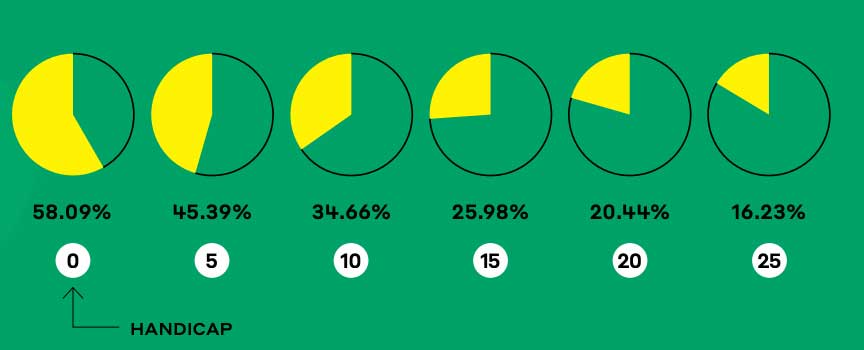 I giocatori con hcp 5 prendono, in media, otto greens in regulation a giro, quelli con hcp 10 sei greens e quelli con hcp 15 tra quattro e cinque.