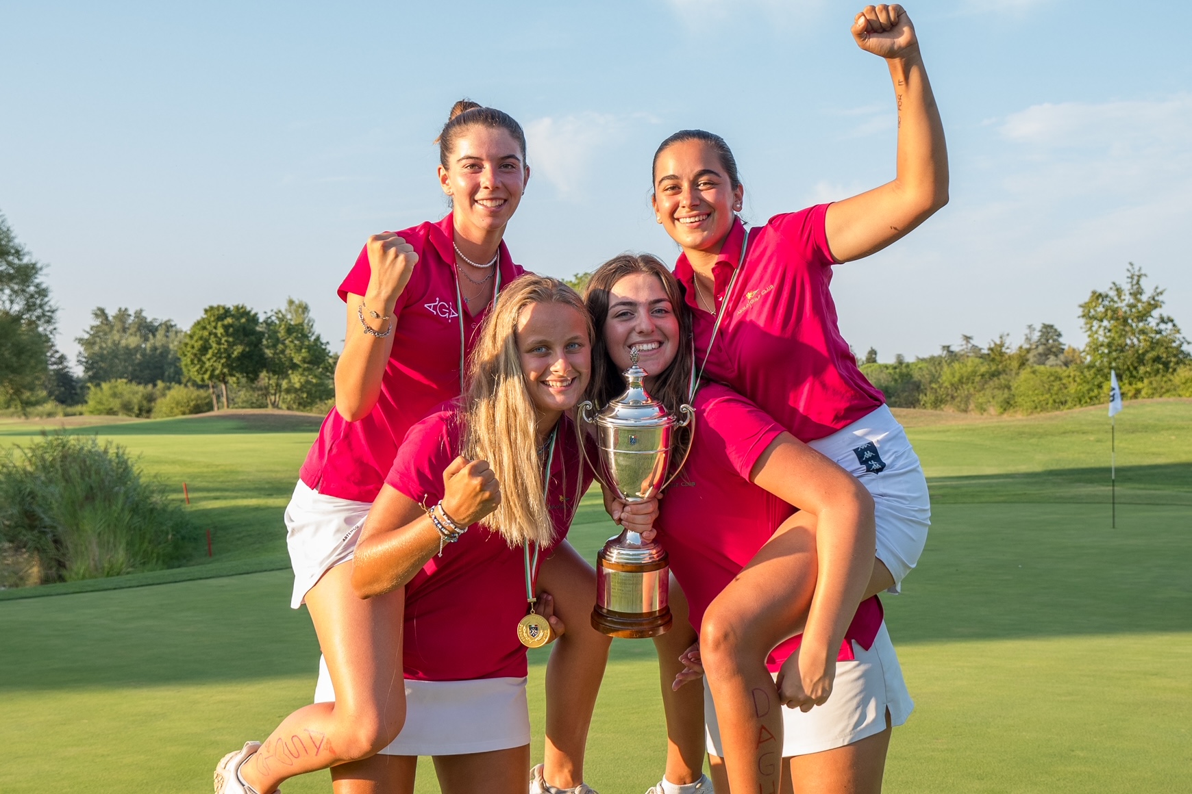 Nella classifica a squadre, dove si tiene conto dei migliori 2 risultati su 3, le atlete under18 di Asolo hanno vinto con un margine di 4 colpi sul team del Golf Club Verona, composto da Anna Giulia Dal Lago, Emma Lucrezia Manzini e Maddalena Bottacini, che hanno conquistato la medaglia d’argento con 427 colpi totali.