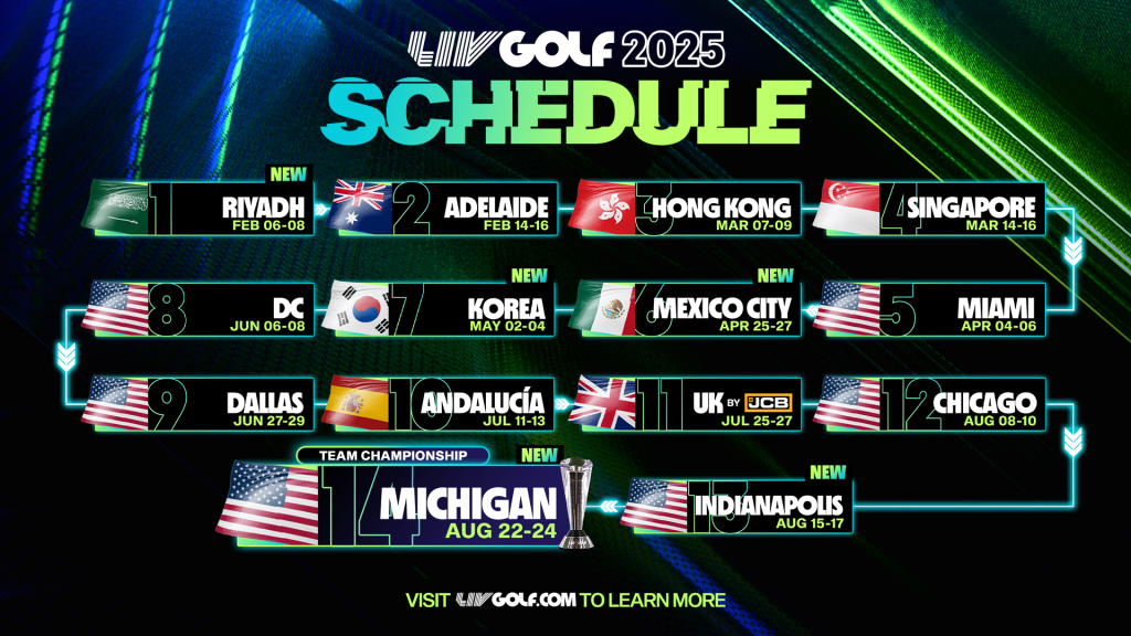 Nella giornata di ieri é stato reso noto il calendario completo della stagione 2025 della LIV Golf.