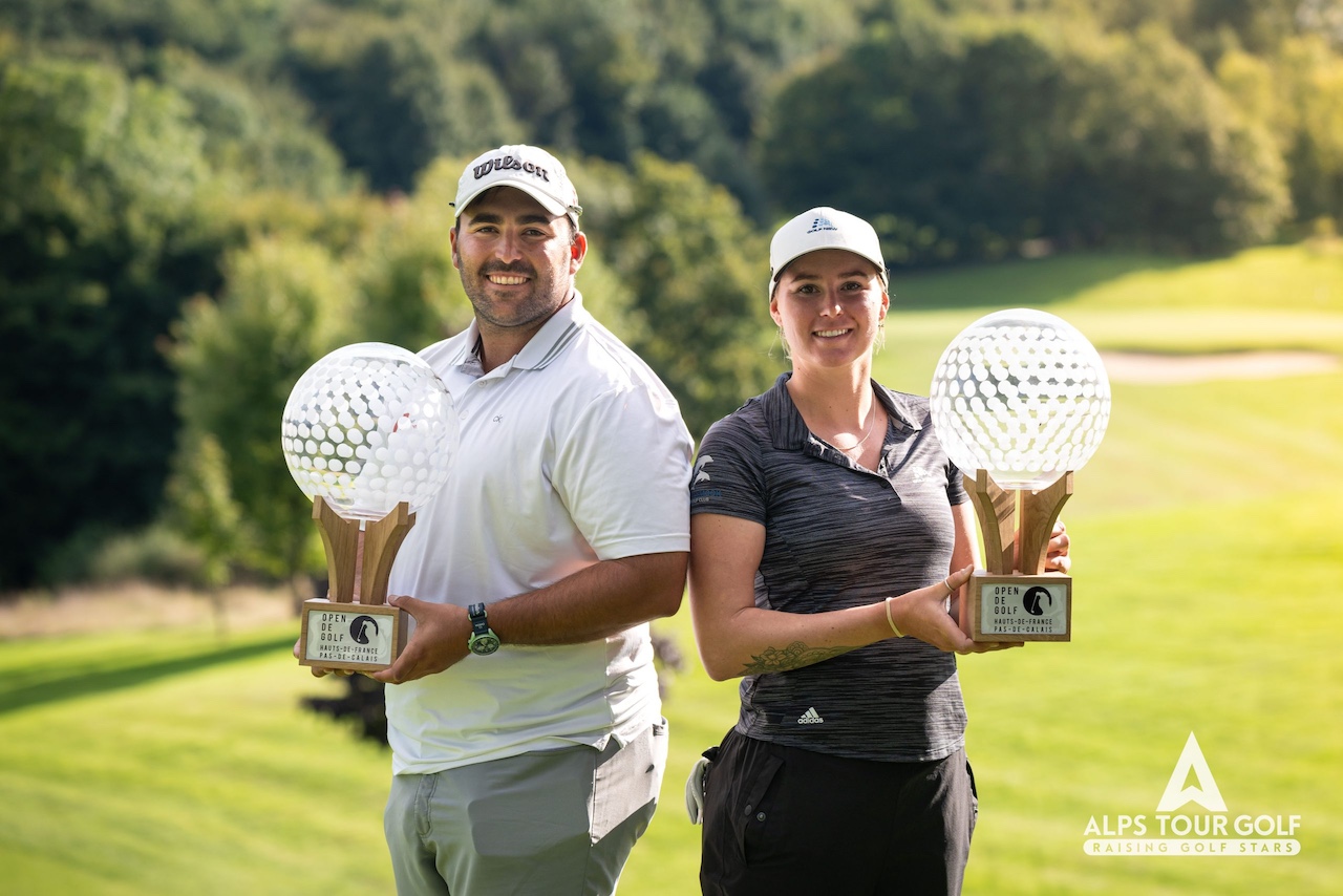 I Vincitori dell’Hauts de France-Pas de Calais Golf Open 2024: lo spagnolo Mario Galiano Aguilar e l’australiana Kelsey Bennett. Photo credit: Federico Capretti/Alps Tour Golf.