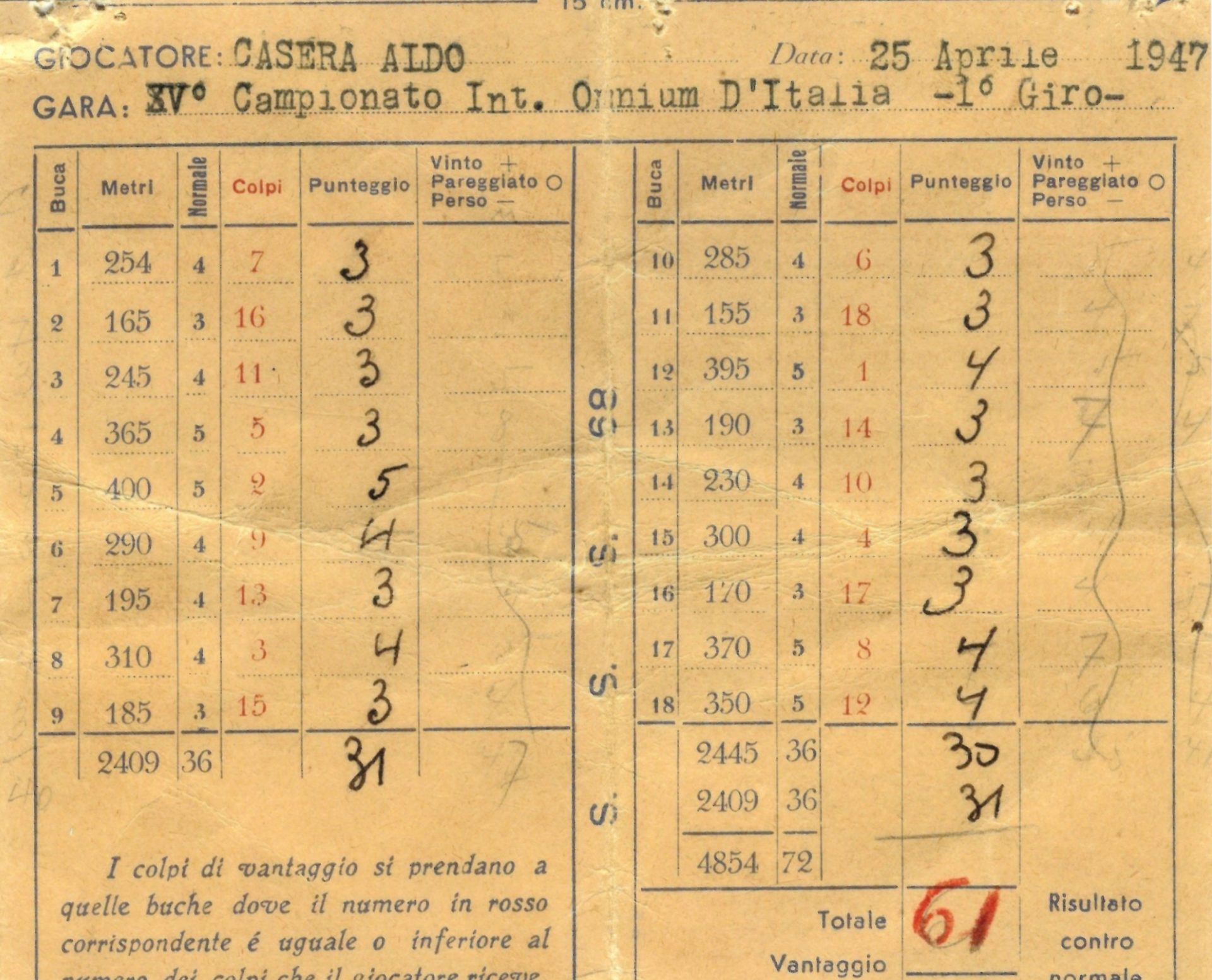 Per contestualizzare, va ricordato che alla destra della buca 5 di Sanremo si trova la casa che fu di Casera; e nel passaggio tra la 5 e la 6 una targa, donata da suoi amici e allievi svizzeri, gli rende omaggio. (Perché qui il discorso è più ampio: Sanremo affonda ben salde le radici nella storia del golf italiano, ed è stato una fucina di maestri, e insomma è un luogo quasi sacro per un golfista. La storia, montalianamente parlando, non dimentica nulla.)