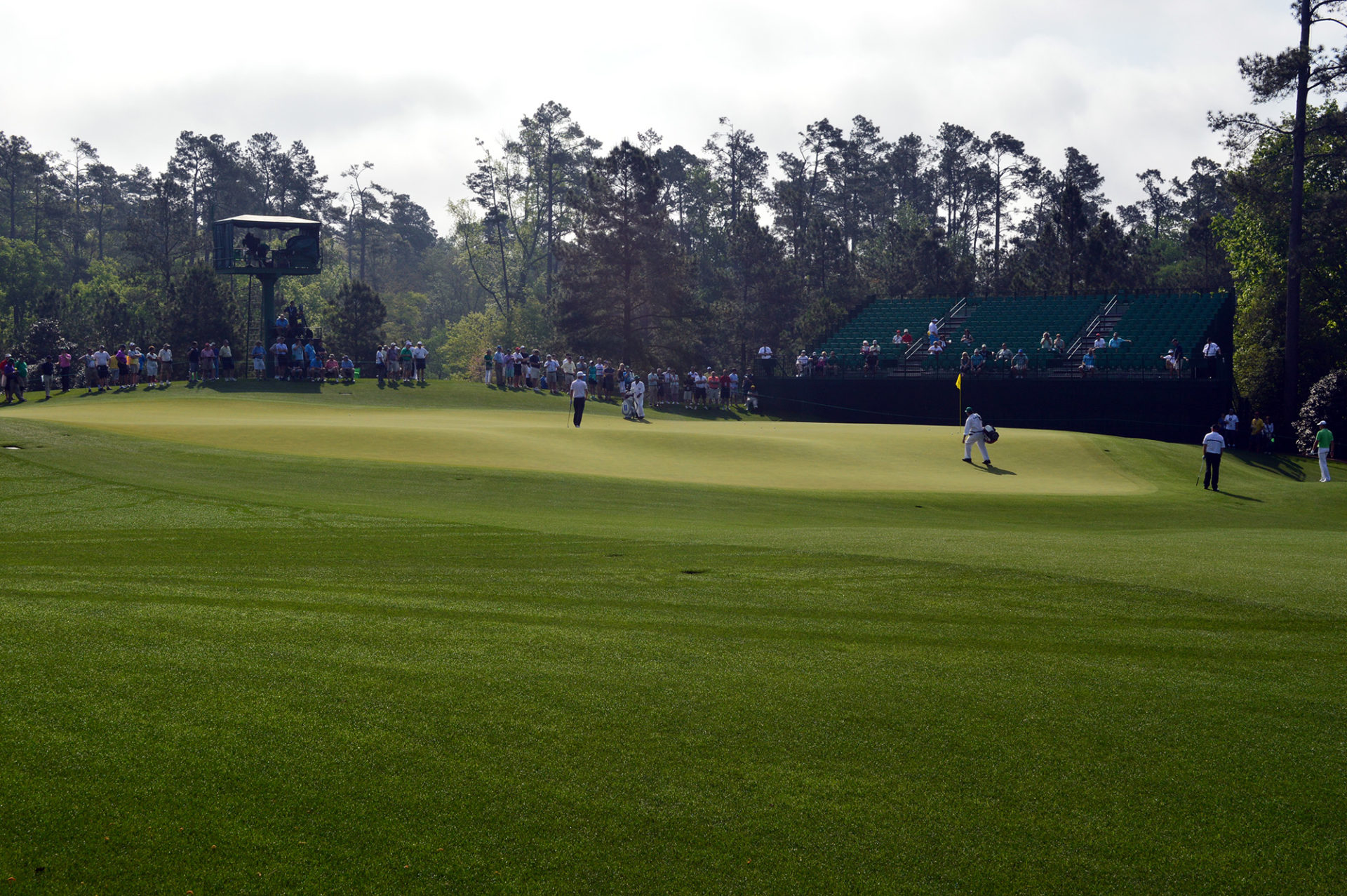In molte buche riuscire a posizionare il tee shot nella parte più pianeggiante del fairway è un grande vantaggio. Esempio perfetto è la 13: La parte sinistra del fairway, vicino al ruscello, è più in piano e da’ un angolo migliore per attaccare il green. La parte destra del fairway invece pende fortemente da destra a sinistra. Con la palla più alta dei piedi (che favorisce un draw) i giocatori devono attaccare un green disegnato per un fade. Dettagli come questo rendono Augusta uno dei campi migliori al mondo.
