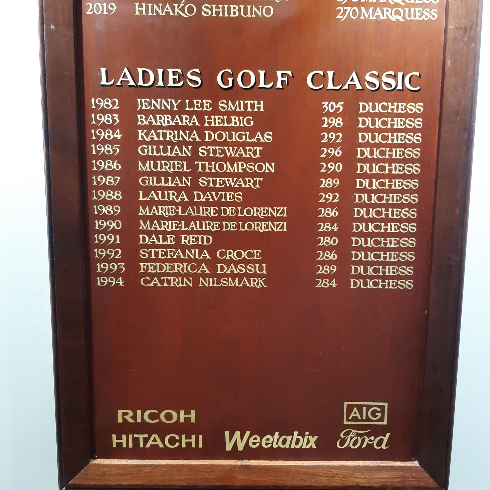Arrivo a Woburn il lunedì mattina presto: il primo giro di prova è fissato per le 13.24, ma voglio avere del tempo per curiosare. All’ingresso della clubhouse ci sono i pannelli in legno con i nomi dei vincitori dei tornei più prestigiosi. Come è mia abitudine inizio a leggere per cercare nomi conosciuti. Eh sì, ma guarda chi c’è! Leggo i nomi di Stefania Croce e di Federica Dassù, vengo assalita da un impeto di orgoglio nazionalista.