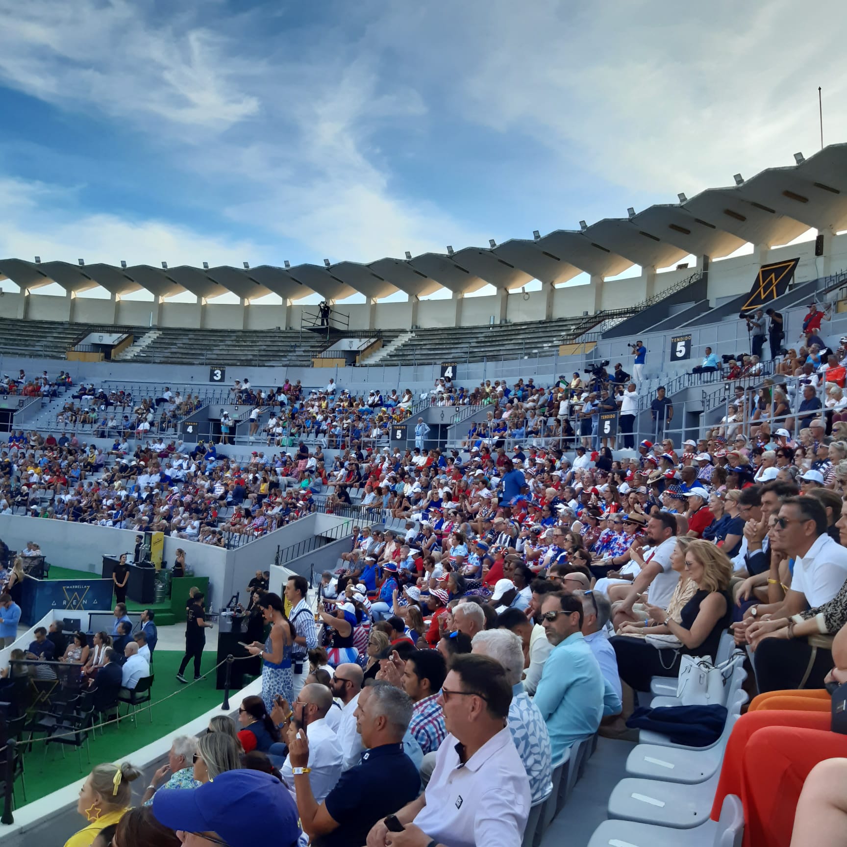 Il tifo si fa sempre più acceso: le bandiere a stelle e strisce, si fanno sempre più numerose, e – aggiungo – anche i cori yankee. Fino a ieri c’era un monopolio quasi totale di supporter europei.