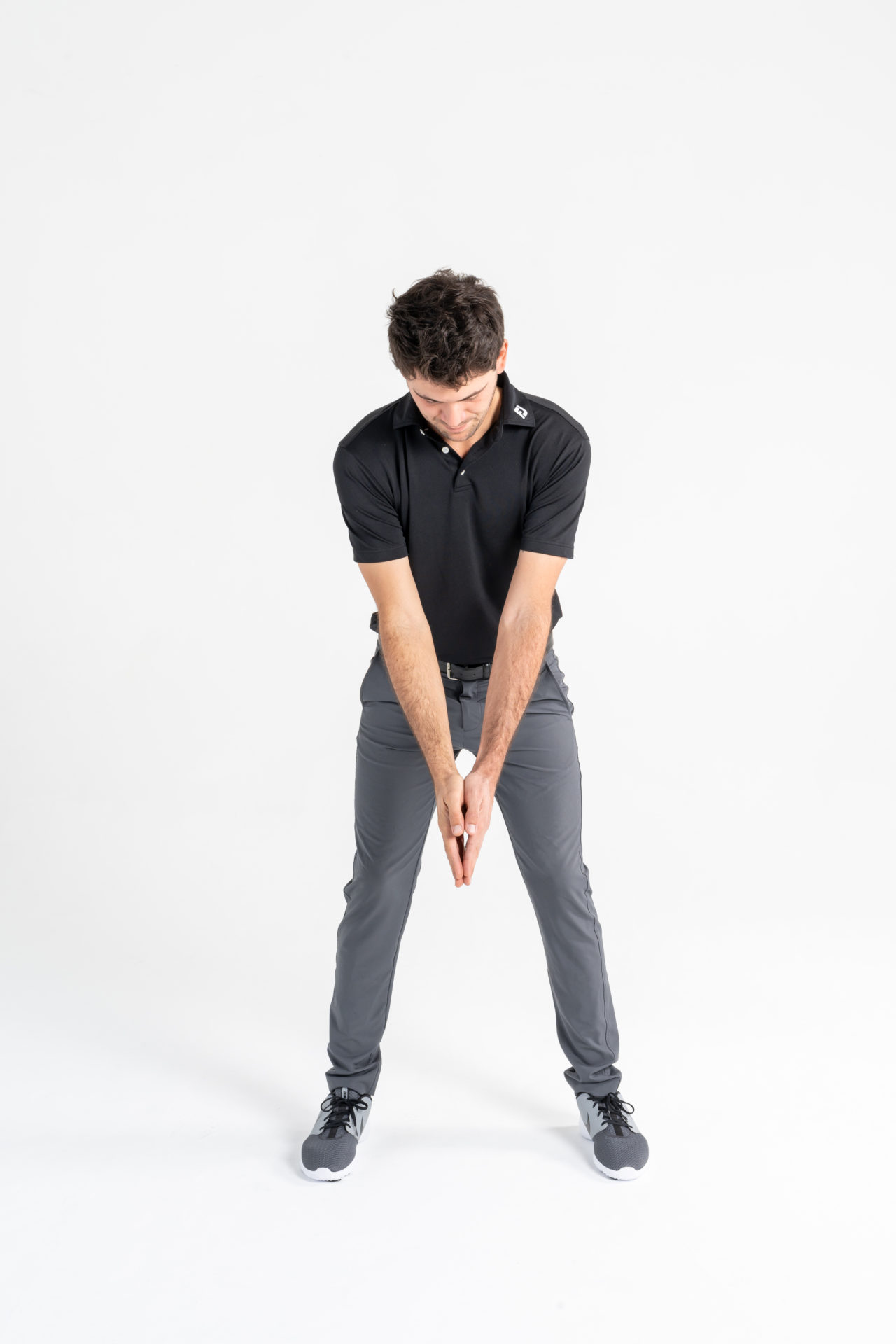 • Posizionarsi al setup senza bastone con i palmi delle mani uniti.