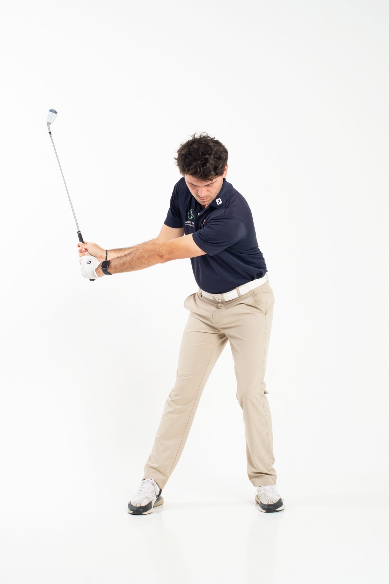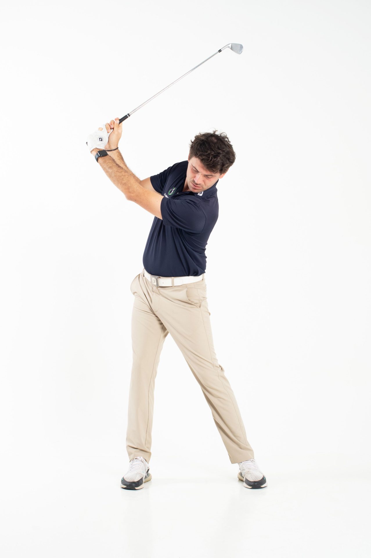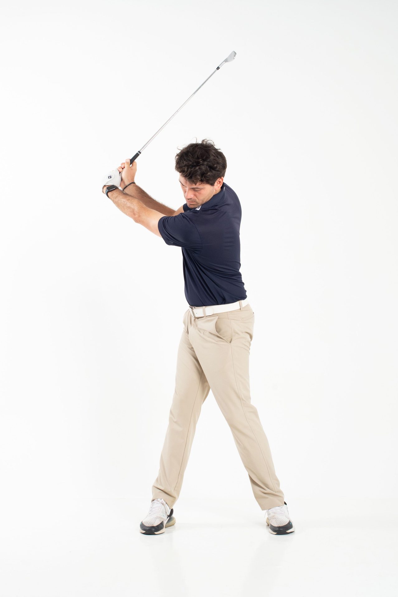 Assicurarsi di ruotare il fianco destro progressivamente fino alla fine del backswing così da eseguire un corretto ricentramento della parte bassa.