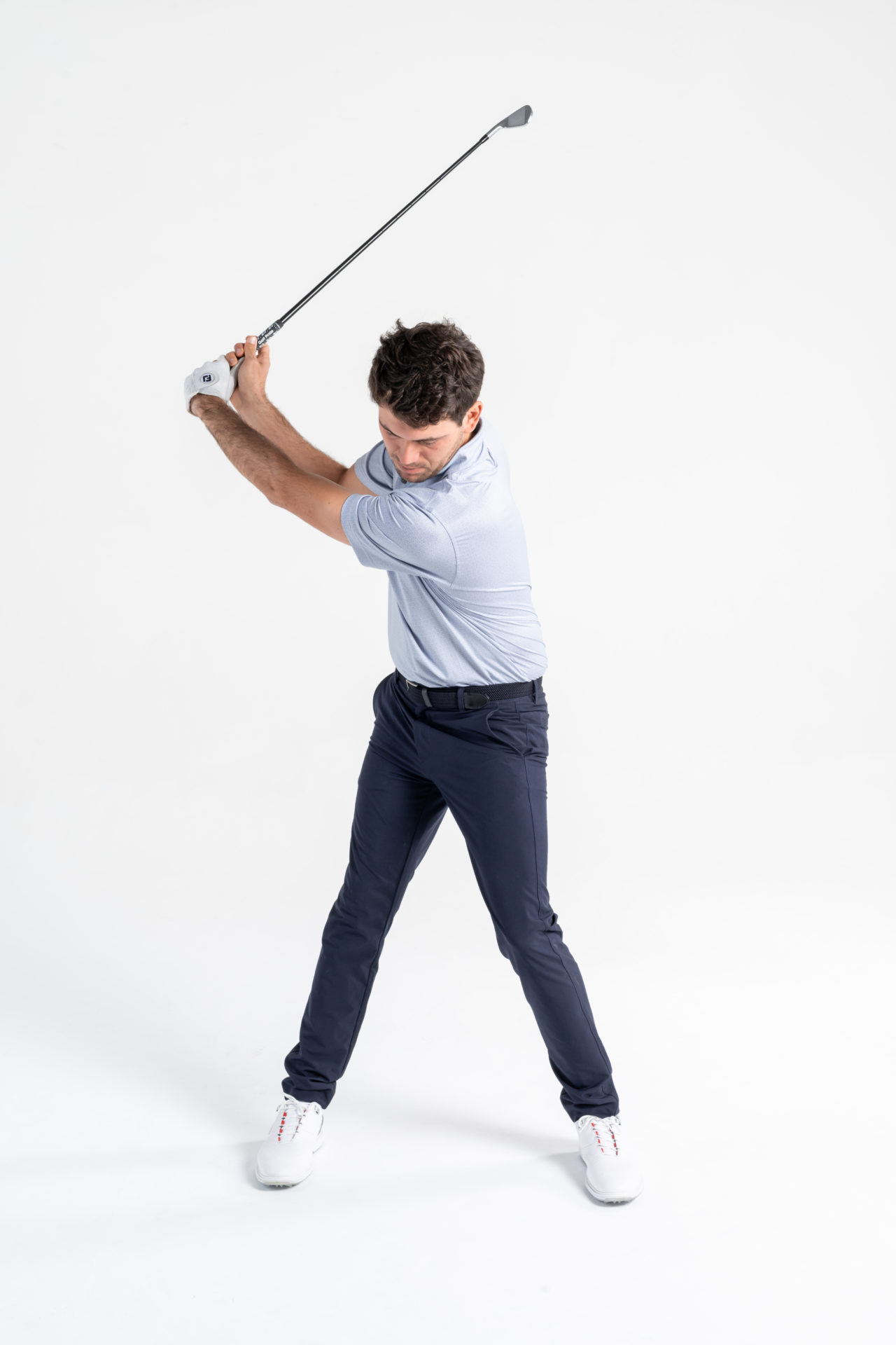 4. Quando si è a circa metà backswing, riallargare il piede sinistro fino alla sua posizione naturale di setup.