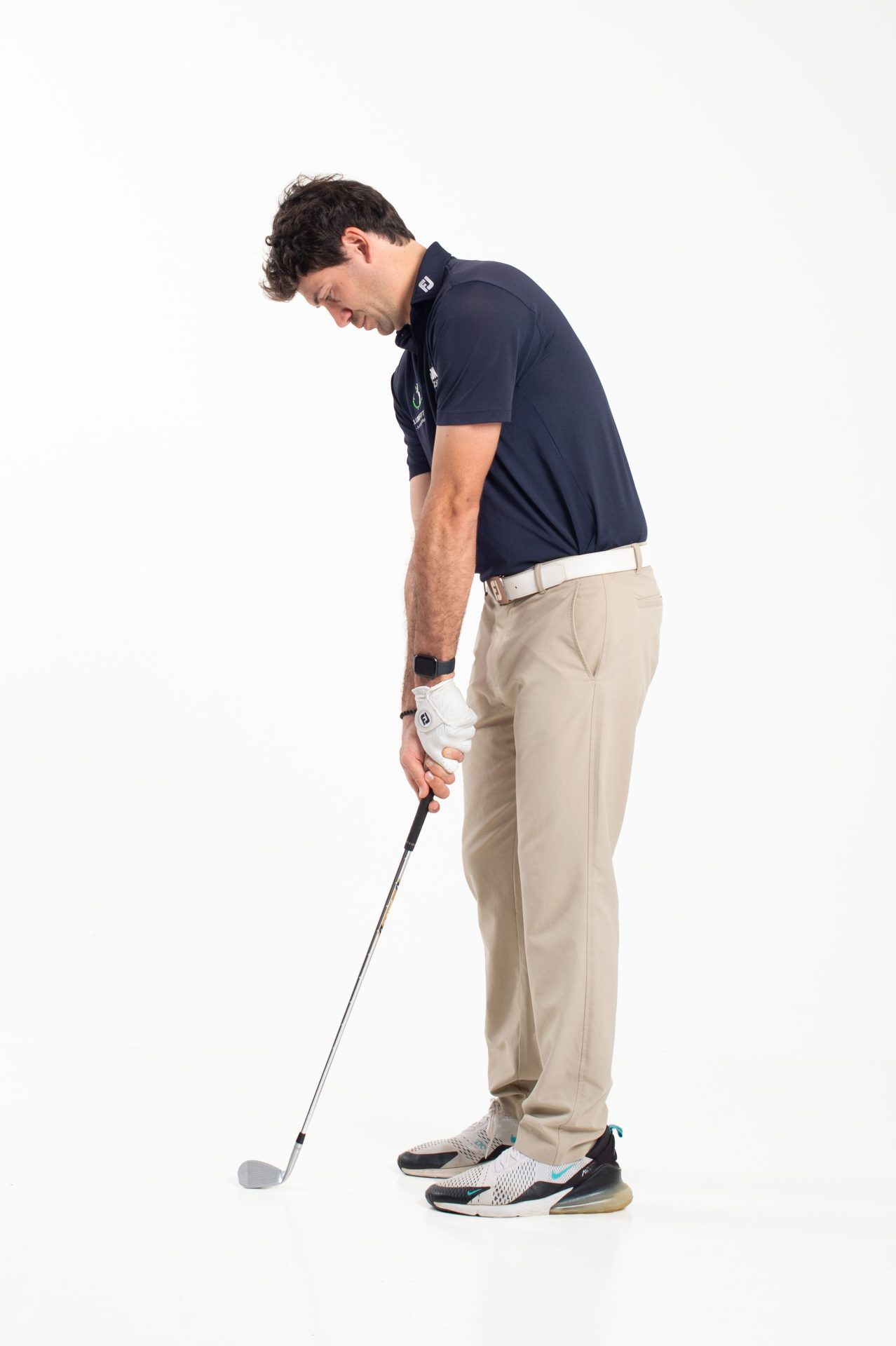 Quando il giocatore sta eseguendo un approccio vicino al green, dovrà presentare una posizione molto più eretta, stando quindi più vicino alla palla e con lo shaft più verticale (Foto 1).