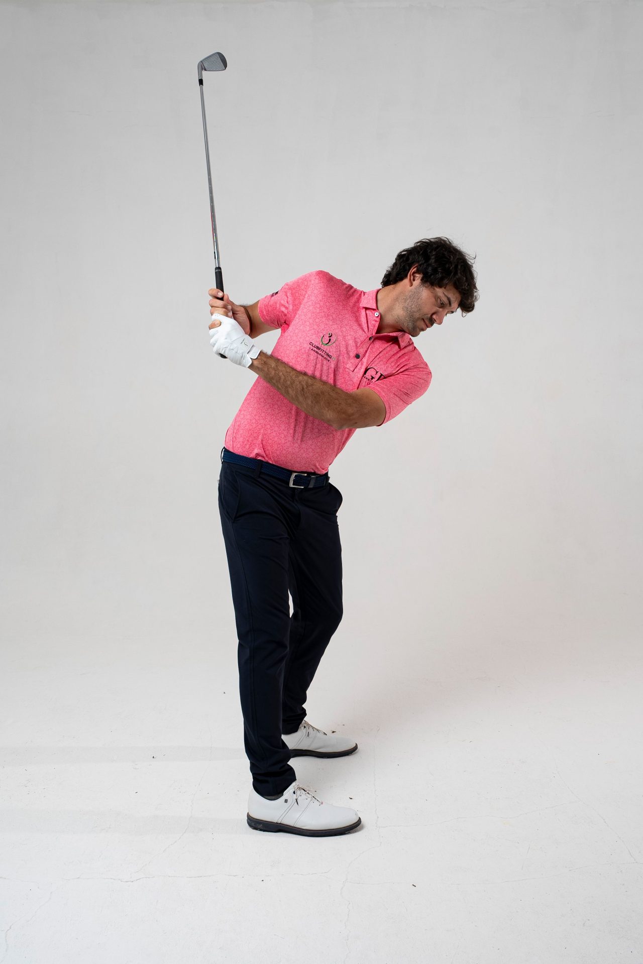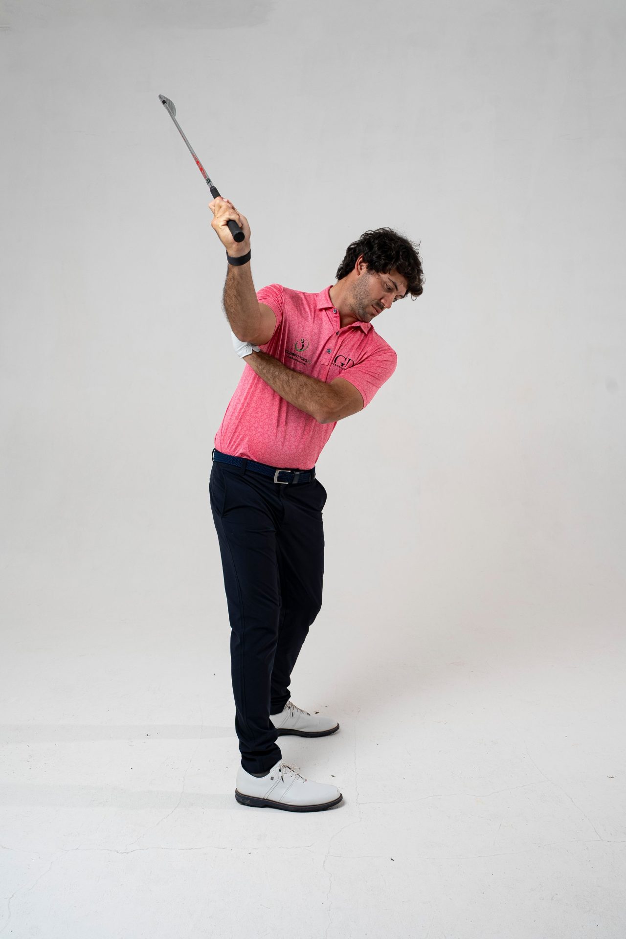 Potete notare come il gomito destro, a causa della retrazione di spalla e braccio, si trovi molto “incastrato“ dietro al corpo. Questa è una posizione da cui è molto difficile giocare un buon golf.