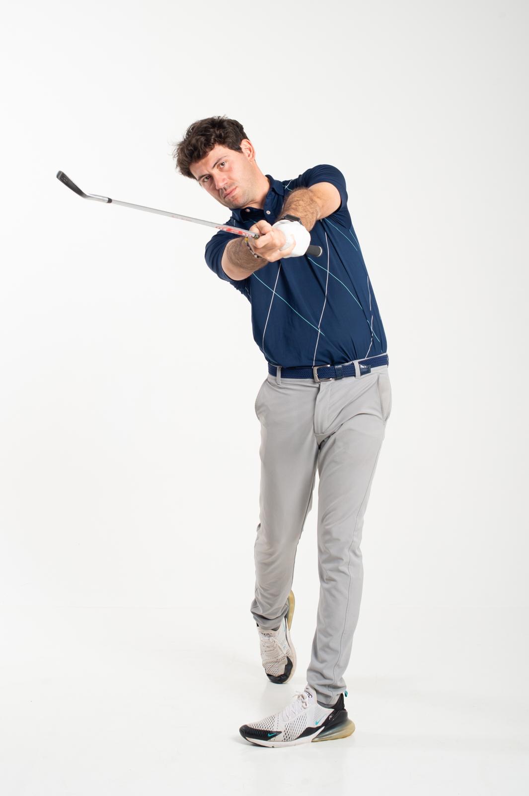 • A seguire, eseguire degli swing da golf normali ricercando lo stesso movimento del corpo in avanti.