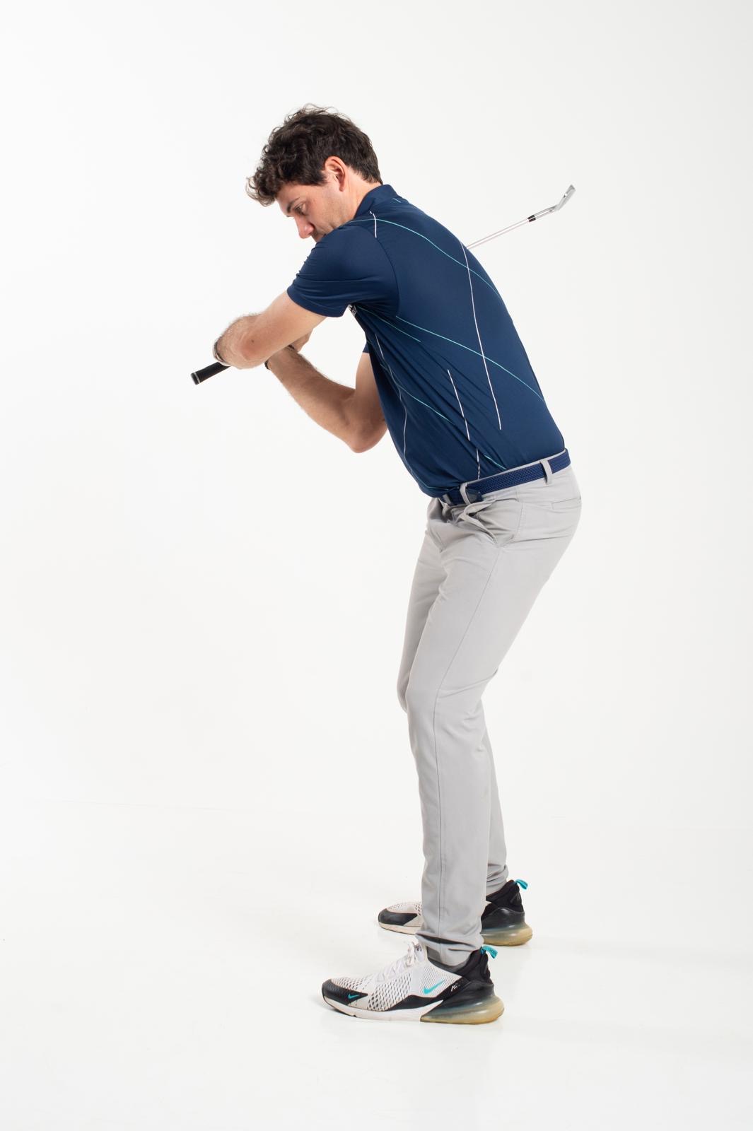 • A seguire, eseguire degli swing da golf normali ricercando lo stesso movimento del corpo in avanti.