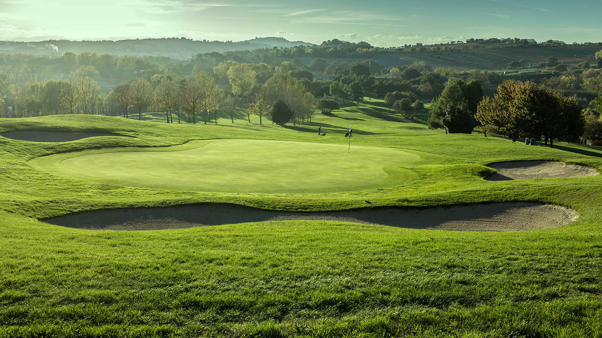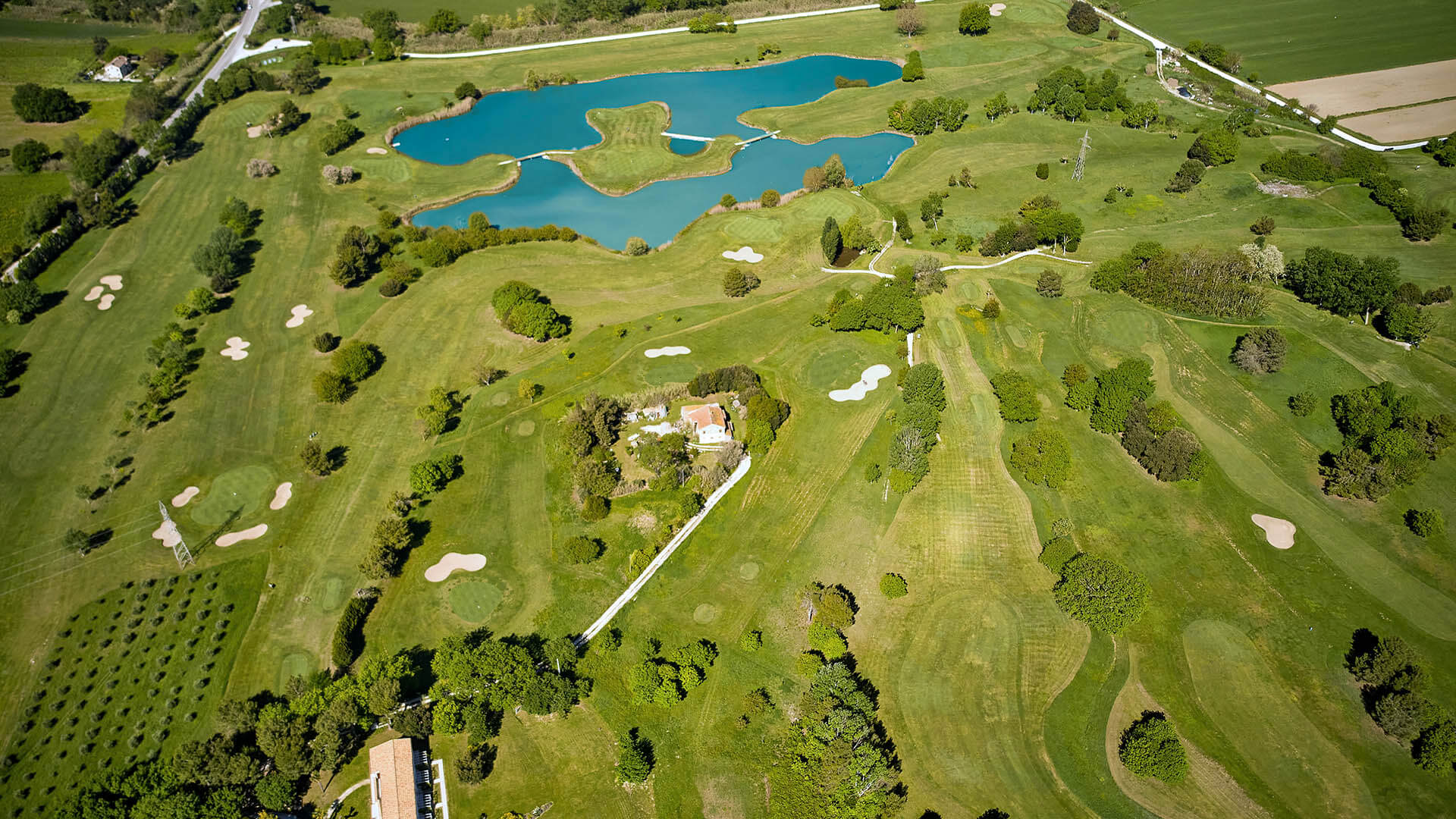 I 6000 metri che compongono il campo sono puro divertimento ma rappresentano per ogni golfista un vero banco di prova. Le 18 buche da campionato ( qui ci sono anche 5 buche executive) sono un par 71 dolcemente ondulate e propongono una estrema varietà di situazioni e di paesaggi: nelle prime nove buche, il gioco è fortemente caratterizzato dalla presenza di un lago; nelle seconde nove , il campo si trasforma e si colora lentamente.
