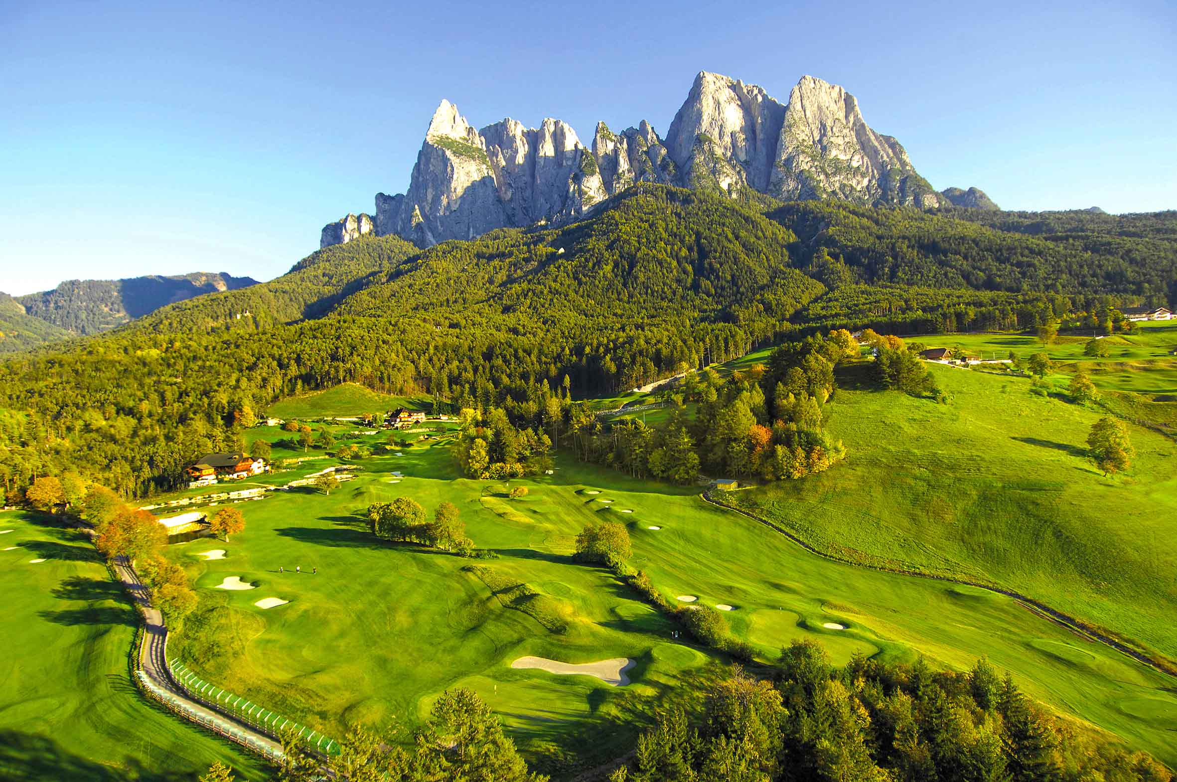 Ricavato sui dolci pendii che si staccano dall’imperioso Catinaccio e dallo scenografico Sciliar, il percorso è uno dei più particolari di tutto il Nord Italia.