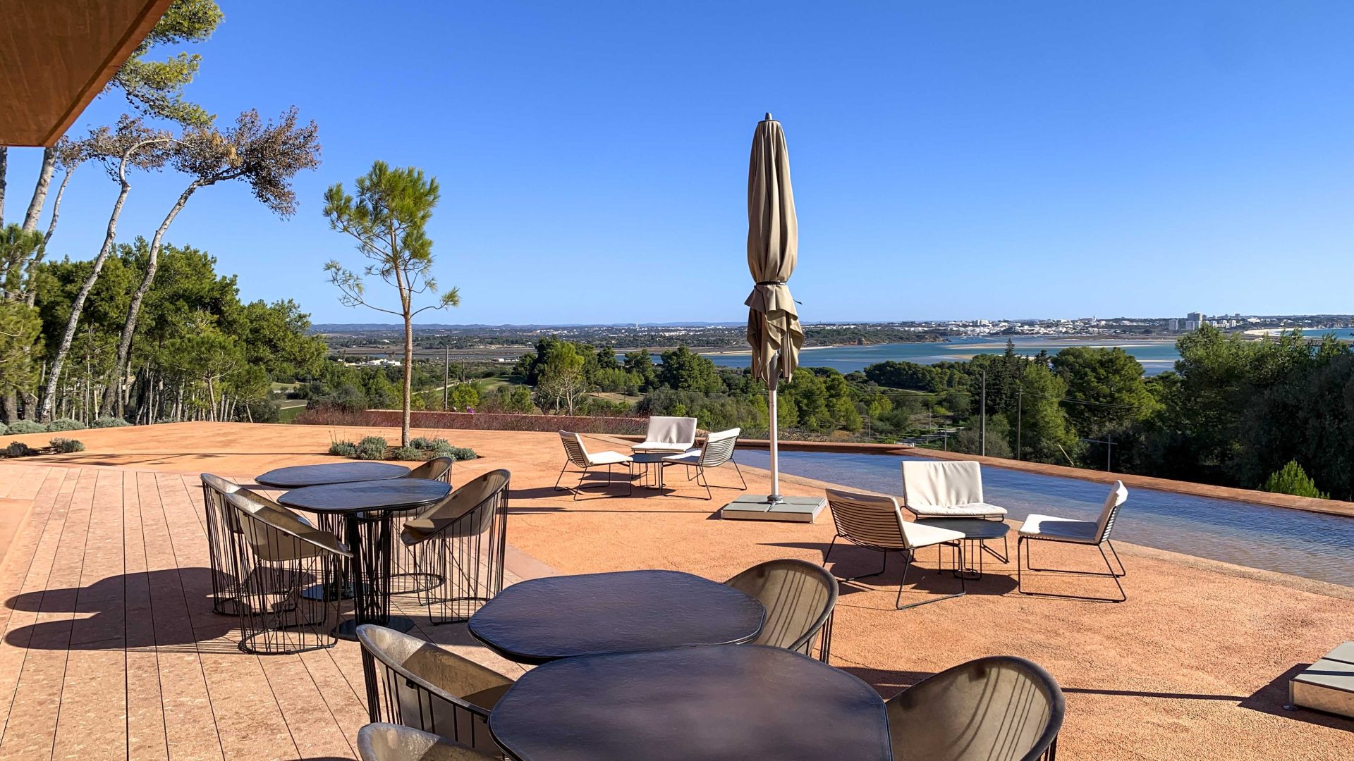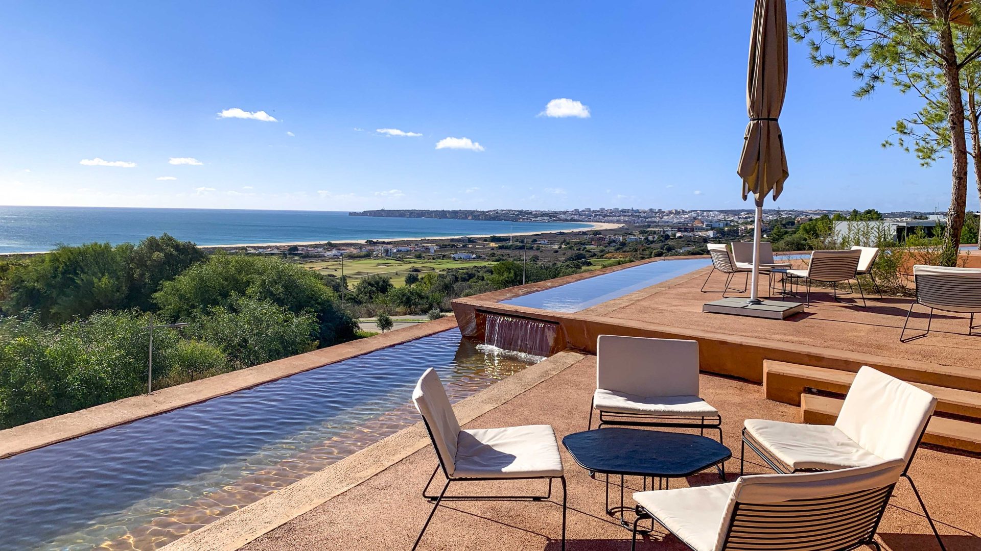 Vedere il treno passare mentre giochi, con l’oceano sullo sfondo, è qualcosa che non trovi spesso. Ma invece di disturbare, aggiunge carattere. Ti ricorda che sei in Algarve, non in un resort isolato dal mondo.